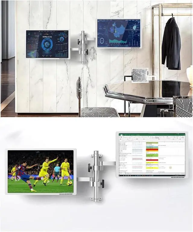 Enhanced StabilityOur computer monitor wall mount is made of aluminum alloy, which has excellent stability and can bear up to 8 kg on a single arm.