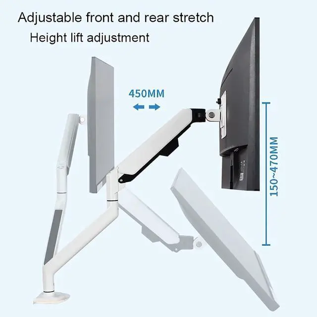 Full Motion Adjustability: Gas spring system enables smooth height adjustments (15-47cm), tilt ±90°, and 45cm front-back stretch for optimal ergonomic positioning.