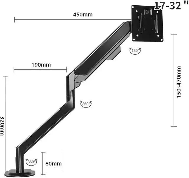 Flexible & Adjustable Featuring an adjustable gas spring system, this monitor arm offers smooth movement with a telescopic range of up to 450mm, allowing for perfect height adjustment and positioning.