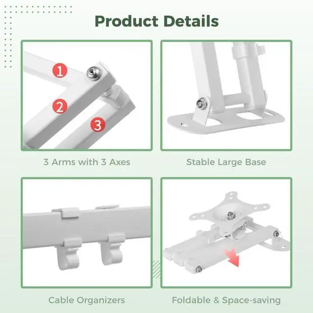 organized setup: 3.5-16.5in adjustable distance for optimized space; foldable mount design; cable organizers included for clean wiring