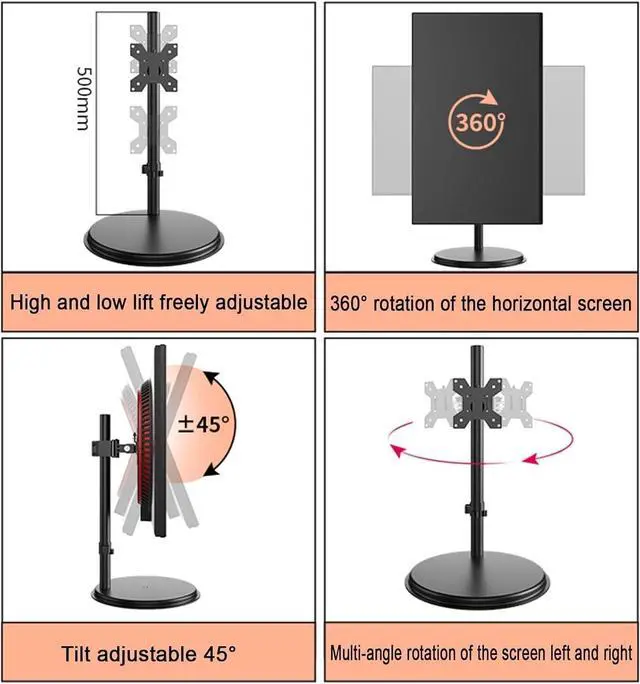 Fully Adjustable: Adjust the height and angle of the screen for optimal viewing, with tilt up to ±45°, full rotation, and screen switch between horizontal and vertical orientations.