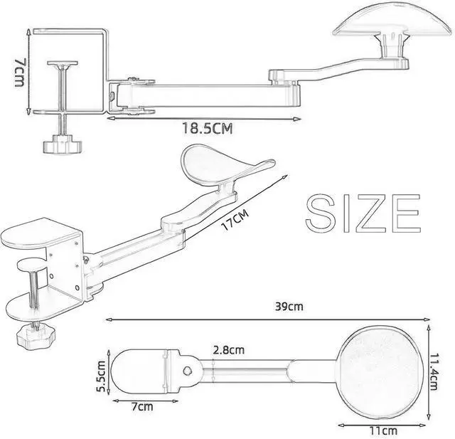 Compact Dimensions: With an overall length of 39cm and an elbow rest size of 11x11.4cm, this arm support is compact yet effective in providing the necessary support without taking up too much space on your desk