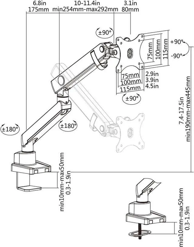 Full Motion Flexibility: Tilt (+90°/-90°), swivel (180°), and rotate (360°) your monitor to achieve the perfect ergonomic viewing angle for both landscape and portrait orientations.