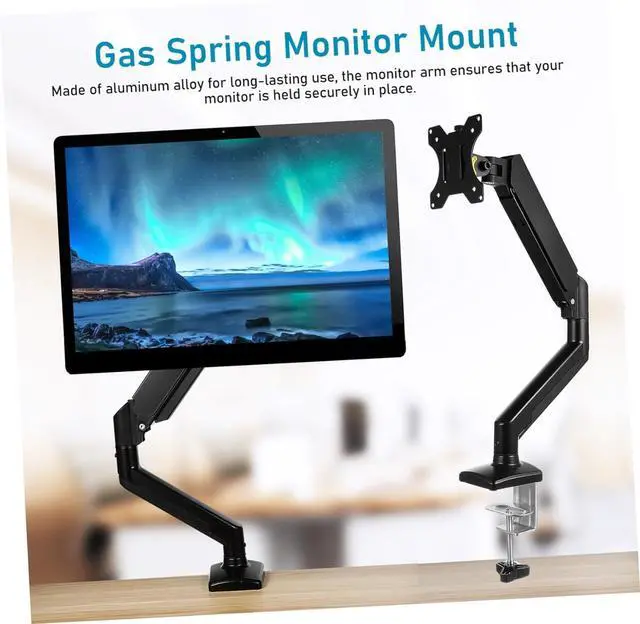 Gas spring: this monitor desk mount features a gas spring that enhances stability and ensures smooth and easy adjustments,monitor desk clamp,monitor arm