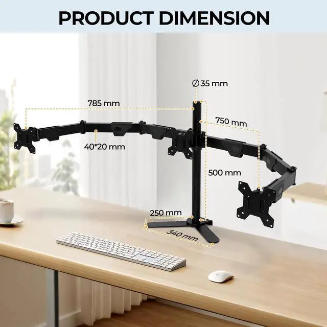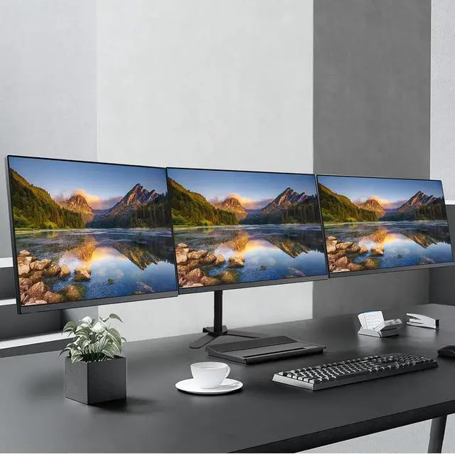 : Maximize your desk space and improve your workflow with our triple monitor mount, perfect for gamers, designers, or anyone needing a versatile workstation that supports a seamless multi-display experience.