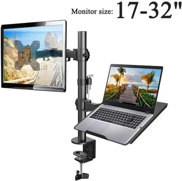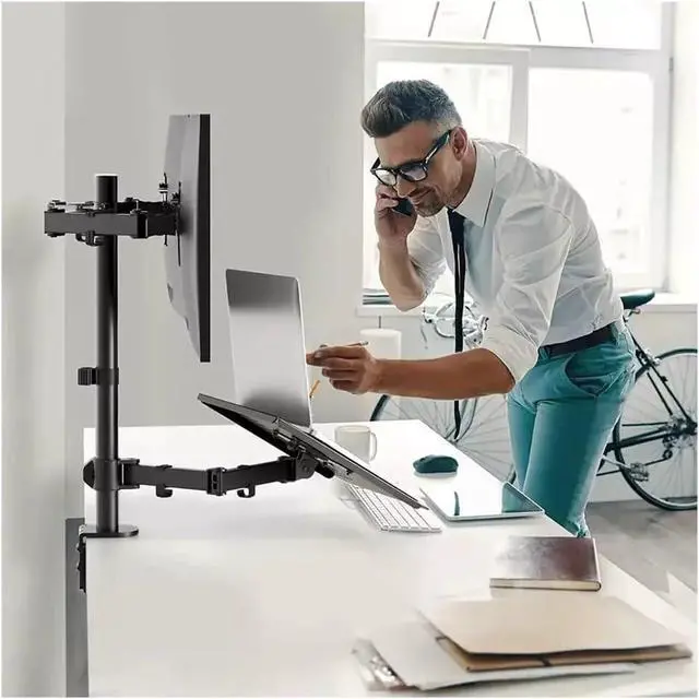 The robust frame and mechanical arms are designed to provide a rock - solid foundation for your monitors and laptop