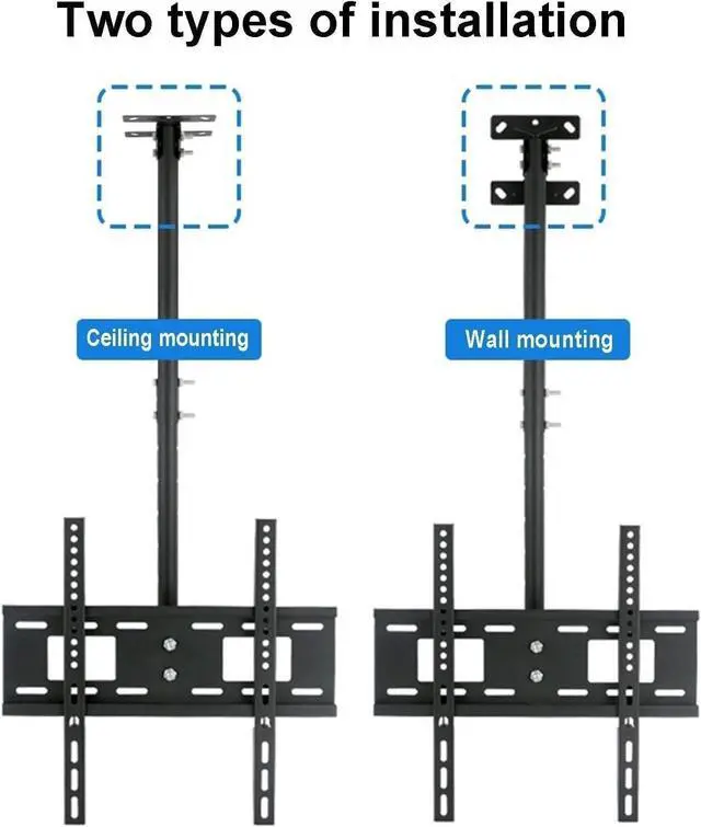 DIFFERENT MOUNTING STYLE: There are two mounting styles for the TV hanger, ceiling mount and wall mount, which can fit perfectly on horizontal, vertical or inclined walls, saving space and increasing functionality for your TV.