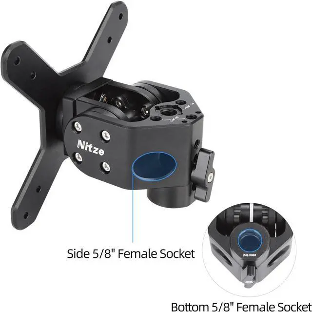 Locking the bottom 5/8 female socket, the monitor supports up 90 degree and down 25 degree tilting