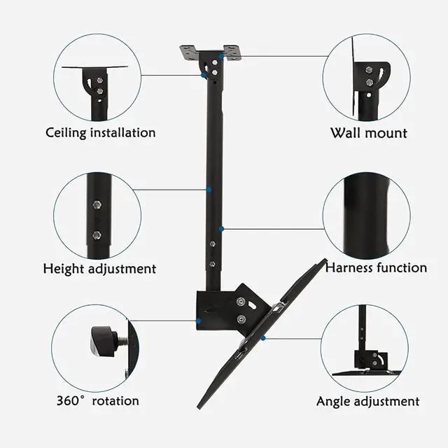 MATERIALS: The TV bracket is made of steel, the base is enlarged and the boom is thickened, which makes the ceiling bracket stable and not shaking, and improves the service life.
