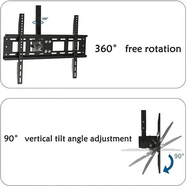 COMPATIBILITY: The TV bracket is compatible with 40-80 inches TV sets, maximum load capacity of 80kg, can be easily applied to different TV sets. There are two types of mounting methods: wall-mounted and ceiling-mounted.