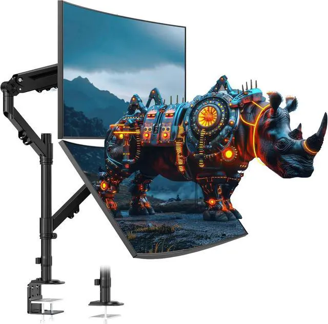 Dual Stacked Monitor Mount: Effortlessly stack two 40" ultrawide monitors with VESA 75x75/100x100 mm. The vertical adjustment distance up to 32(VESA center to desktop), this can greatly increase desktop utilization for you.