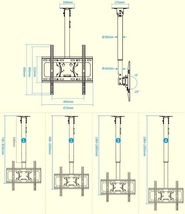 DIFFERENT MOUNTING STYLE: There are two mounting styles for the TV wall mount, ceiling mount and wall mount, which can be perfectly mounted on horizontal, vertical or tilted walls, saving space and increasing functionality for your TV.