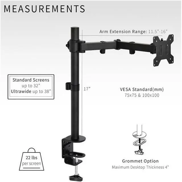 This desk mount stand is built to endure the test of time.The sturdy metal arm and base are engineered for maximum strength and durability, capable of withstanding daily use and frequent adjustments