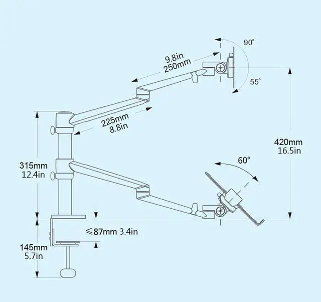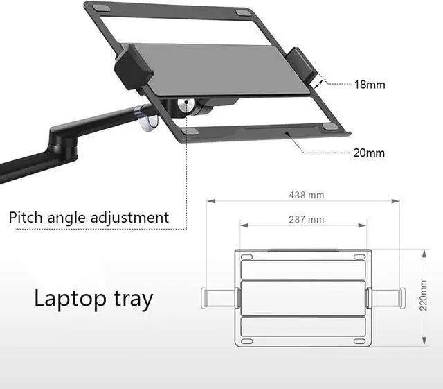 Single Desk Arm Holder for 17"-32" Screens, Extra Tray Fits 12"-17" Laptops, Each Arm Holds Up to 17.6 lbs, supports 75x75/ and 100x100mm