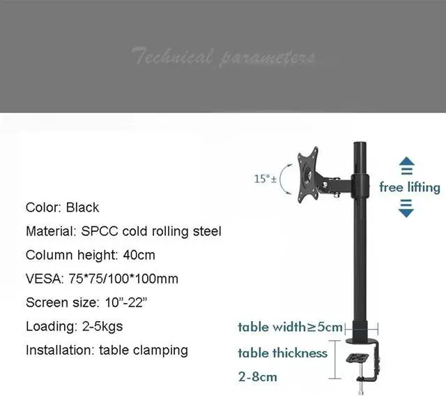 Wide Compatibility Supports monitors from 10" to 22" with compatibility (75x75mm, 100x100mm) and holds up to 11lbs for stable mounting.