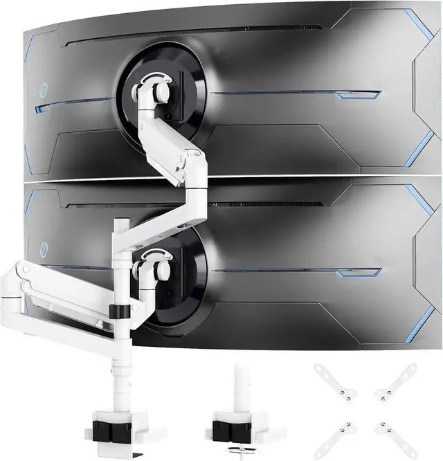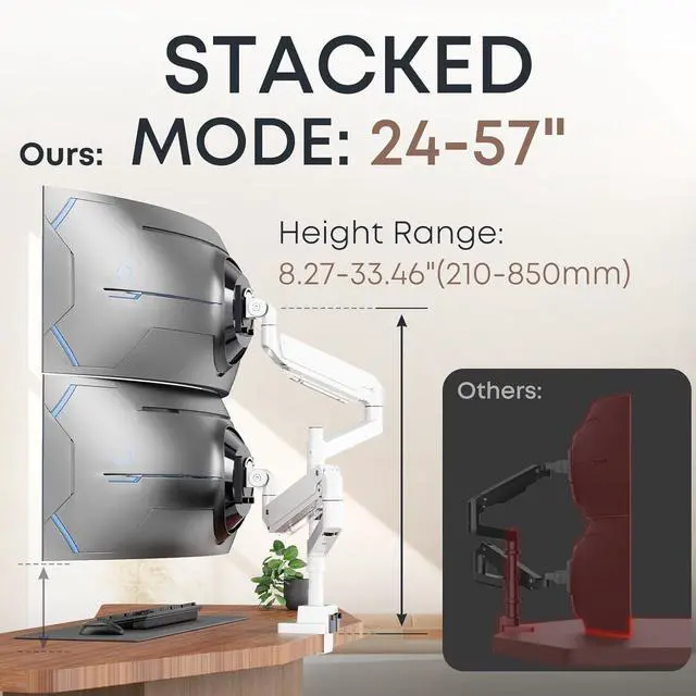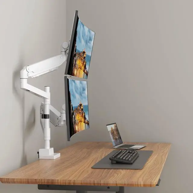Fully Adjustable Vertical Mount: Stack your dual monitors vertically and adjust for ergonomic comfort. Features tilt (+60°~-20°), swivel (+90°~-90°), and rotation (+90°~-90°) for custom viewing angles and improved productivity