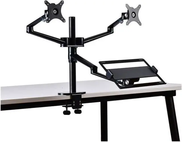 With this combined monitor and laptop stand, you can transform your cluttered workspace into an organized and efficient area. By mounting your monitors and laptop on this single stand, you free up valuable desktop space