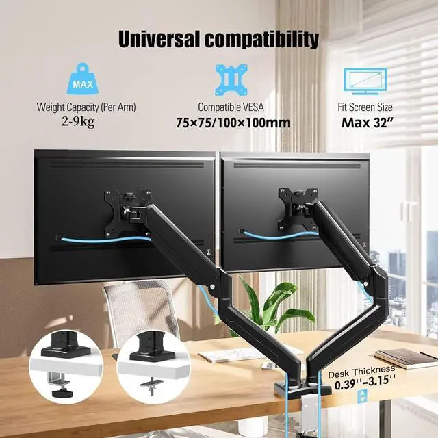 SUITABLE for 13 - 32 INCH MONITORS: The monitor stand is suitable for most monitors on the market. The monitor stand for 2 monitors can carry 2-9 kg for 13-inch to 32-inch monitors