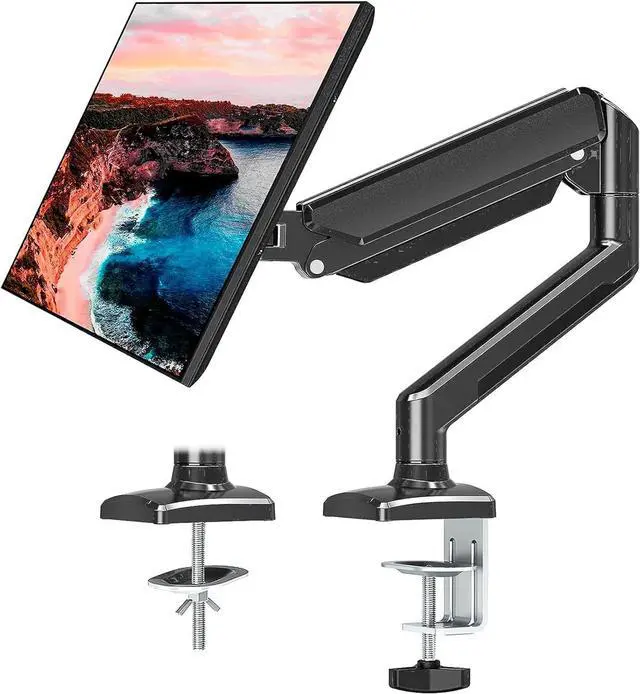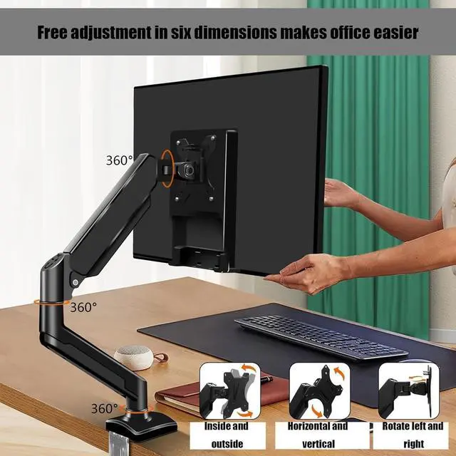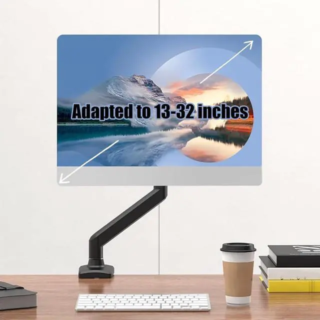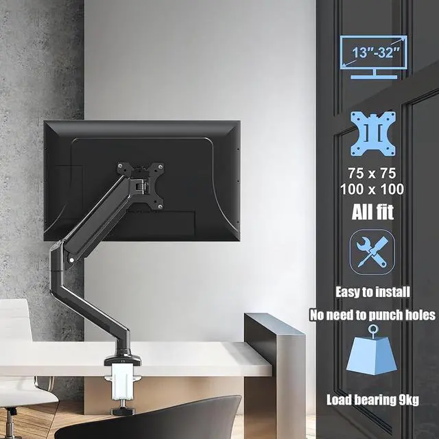 HIGH-QUALITY ALUMINUM ALLOY: Our single monitor arm is made of high-quality aluminum alloy, which is stronger than those made of iron. Therefore, this single monitor stand can easily support 13-32-inch screens weighing 2-9 kg. No need to worry about the monitor sinking