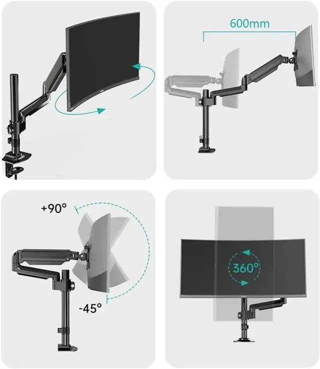 Our adjustable single monitor arm offers a wide range of movement, Monitor-Mount supports screen ratates 360° for landscape or portrait orientation, swivels 180° to share your displays. It can offer the perfect position for your gaming monitor or PC screen, Adjustable single-monitor-mount include ergonomic design can effectively alleviating posture and back issues.