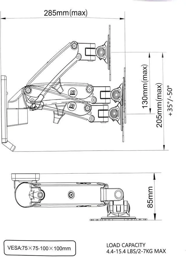 Securely Supports up to 7kg: With a maximum weight capacity of 7kg (15.4 lbs), this mount can safely accommodate most medium sized monitors without any security concerns, providing stable support for prolonged use.
