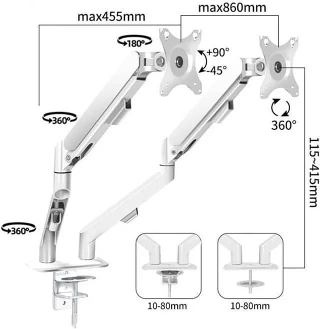 Easy to Assemble: We provide all the necessary tools and hardware for easy assembly. The detachable VESA mount with dual mount options. Desk required thicknesses for both C-clamp mount and grommet mount is 0.39" to 3.14"