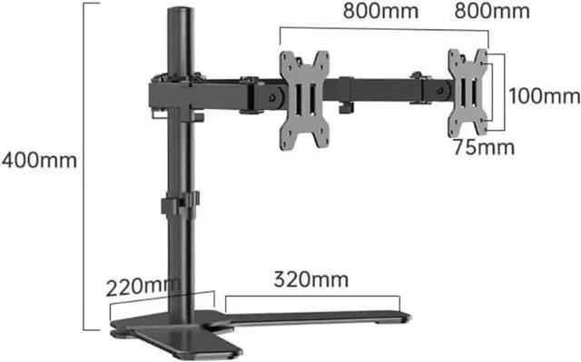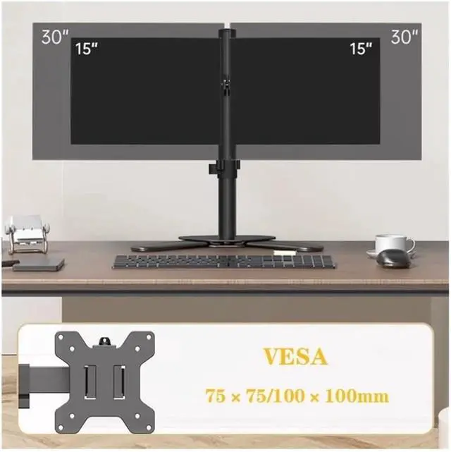 Compatibility: The monitor stand mount fits most flat/curved screens up to 30 inches, and supports weight up to 26.4 lbs per arm. For monitor with Mounting Pattern 75x75mm or 100x100mm. The free-standing V-Base can stably fit any desk.