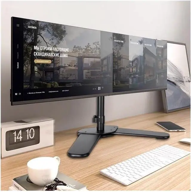 Sturdy Construction: The heavy-duty base stand provides strong and stable support for your monitor screens. The elegant engineering keeps your work space looking modern and sleek.