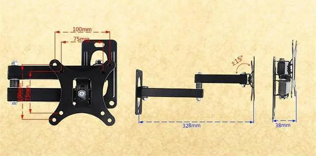 This long arm TV will fit most TV's from 14 to 24 inch in size.