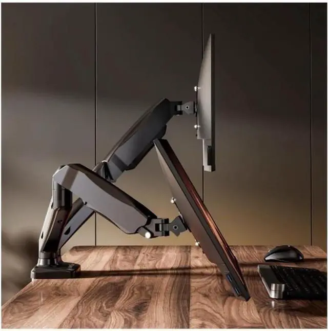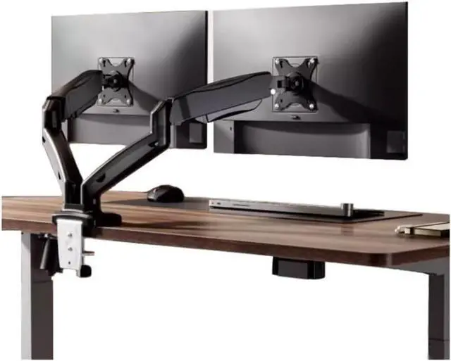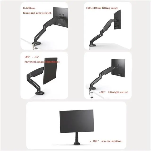 The monitor arm offers full monitor movement with 19.6" of arm extension and 9.8'' of height adjustment range. The dual monitor arm with a gas spring system provides smooth and durable adjustments. Please adjust the tension of the gas spring arm properly according to the weight of your monitor.