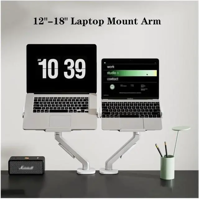 Universal laptop Mount Desk: Hold one up to 12"-18" laptop. Each arm can hold 4.4-19.8lbs laptop
