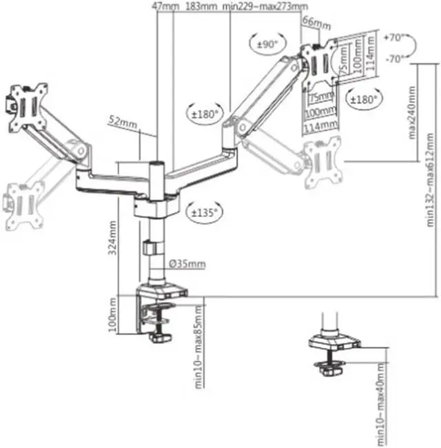 Customize Your Screen Angle - This full motion dual monitor arm allows your monitor ±70°tilt, ±90°swivel and ±180°rotate to find an optimal view angle to meet your demands.
