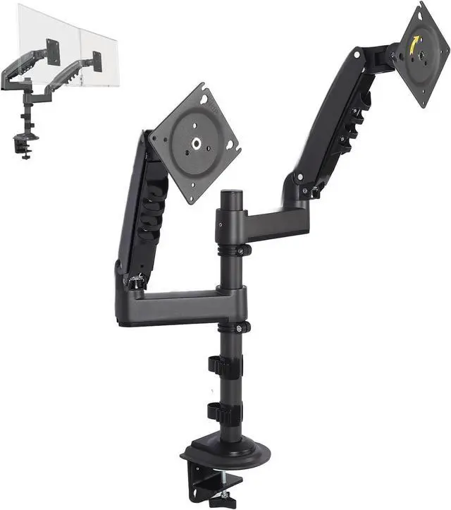 Full Range Of Adjustable Angles: Featuring tilt adjustments from +85° to -30°, 180° swivel, and 360° rotation for portrait or landscape mode, this dual display mount allows users to easily change the viewing angle according to preference or task requirements. It provides optimal viewing, especially beneficial for prolonged computer use.