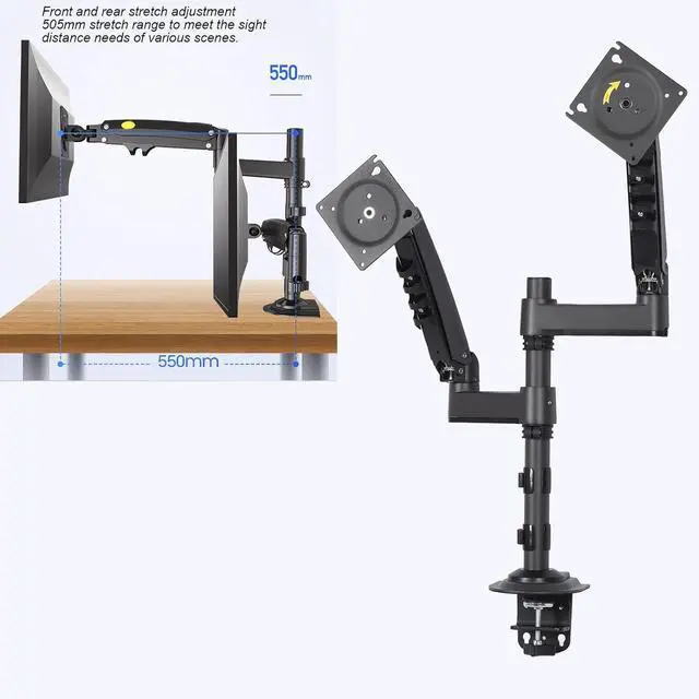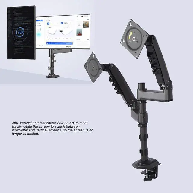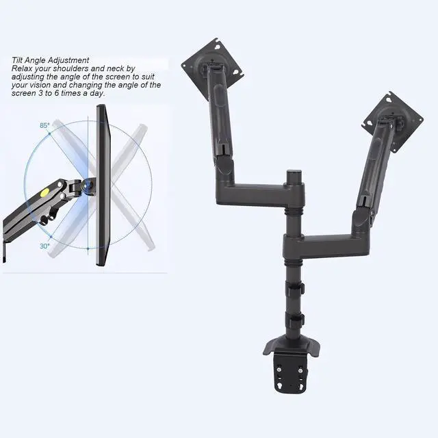 Full Range Of Adjustable Angles: Featuring tilt adjustments from +85° to -30°, 180° swivels, and 360° rotation for portrait or landscape mode, this Duals display mount allows users to easily change the viewing angle according to preference or task requirements. It provides optimal viewing, especially beneficial for prolonged computer use.
