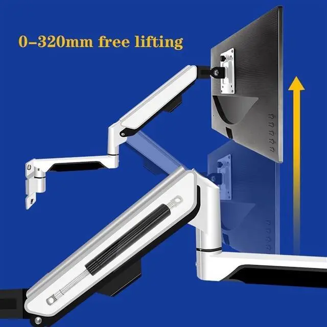 The monitor arm offers an exceptional range of flexible motion featuring +90° to -90° tilt, 180° swivel, 360° rotation, and 12.59" of smooth height adjustment with pneumatic spring lift.