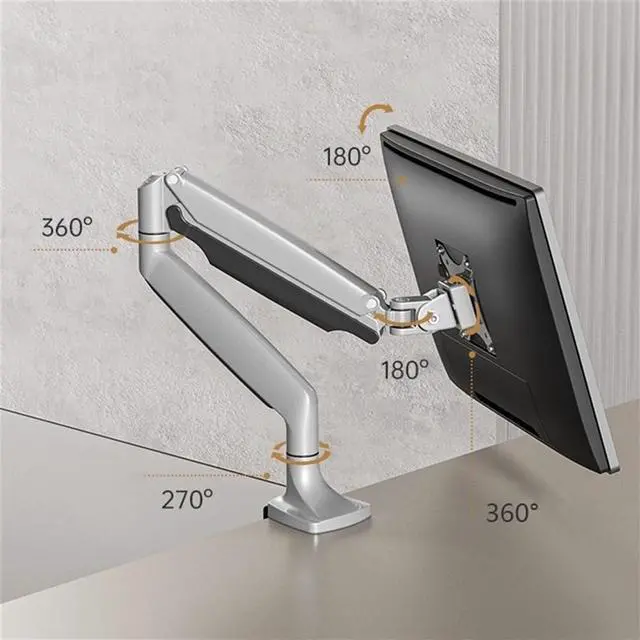 Fully Adjustable - The gas spring arm offers an exceptional range of flexible motion featuring -90° to +90° tilt, 180° swivel, 360° rotation, and 13.1" of smooth height adjustment with gas spring lift.