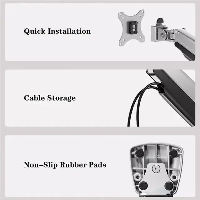 Premium Aluminum Construction - Provides excellent support for one monitor screen weighing up to 19.8lb, and the built-in elbow spring gauge allows perfect weight adjustment at any level. Maximum screen height to the center of the screen is 23.8".