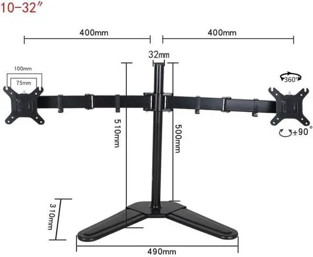 Fits 32" Dual Monitor Stand for Desk - This freestanding dual screen monitor mount widely fits two 10" to 32" LCD LED monitors, with VESA mount 75x75 and 100x100mm, holds up to 17.6 lbs per arm. (Please verify your monitors size and weight are within our standard before purchasing)