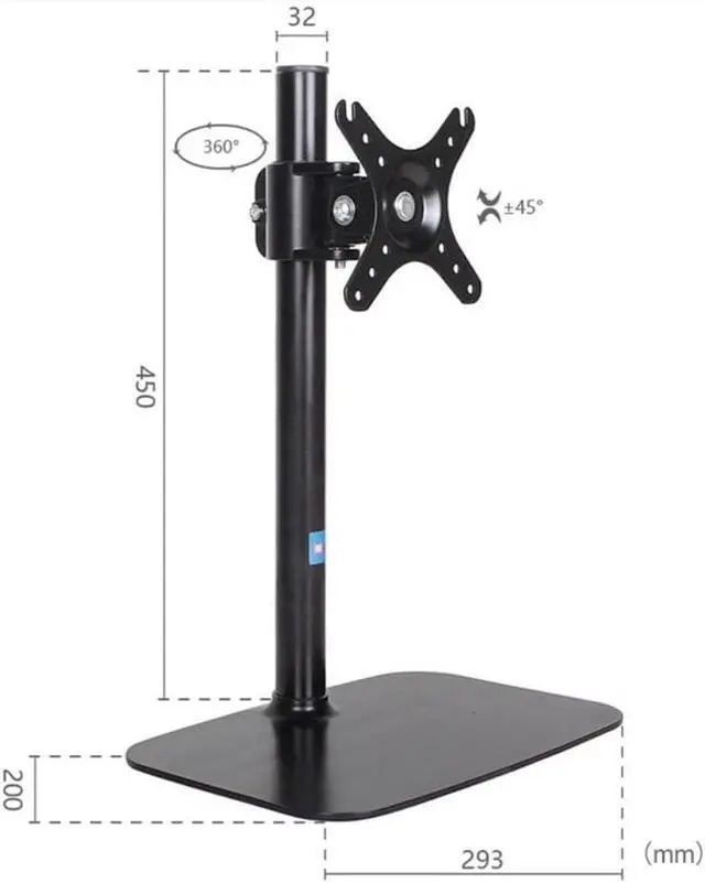 This single monitor desk stand holds 14-32 inch LCD LED flat or curved screens, supports up to 18.7 lbs, compatible with VESA patterns 50x50mm, 75x75 mm and 100x100 mm.