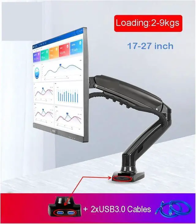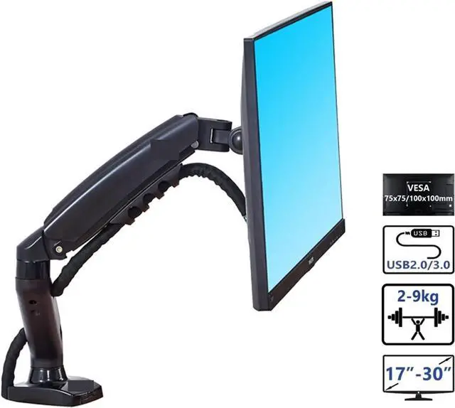 Monitor Arm, F80 + 2XUSB3.0 Desktop Gas Spring 17-30" LCD LED Monitor Holder Mount Arm Full Motion Display Stand Loading 2-9 Kgs,Easy Assembly(2021 F80NX)