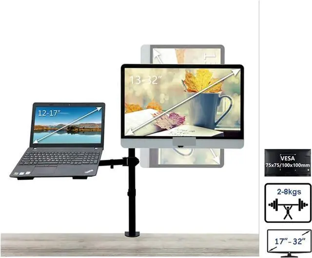 Monitor Arm, Dual LCD Monitor Desk Mount Fully Adjust Stand with Extra Laptop Tray for Laptop Notebook Up to 17" and Screen Up to 32",Easy Assembly(M074)