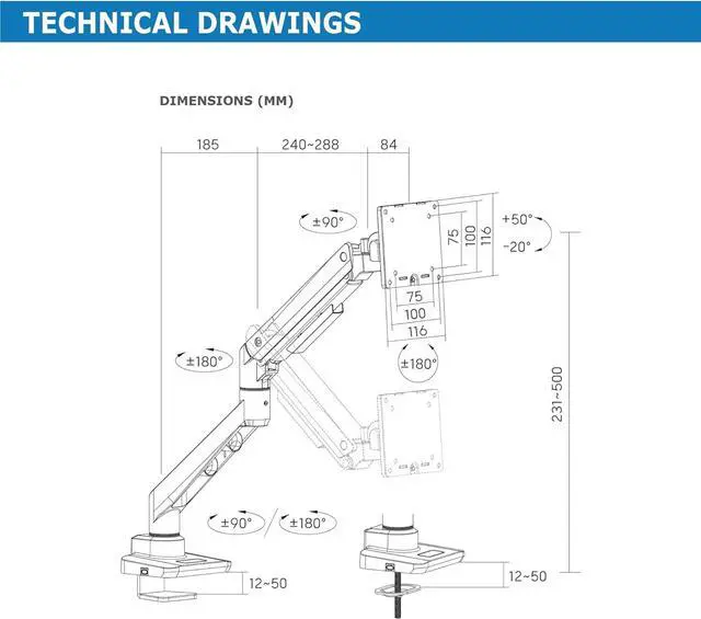 ROBUST ROTATING FUNCTION: Allows 360° rotation of the monitor arm, which guarantees complete flexibility and optimal alignment of the screen in the workplace.
