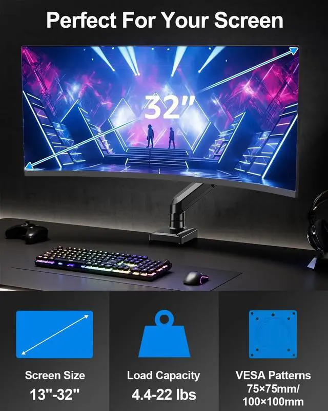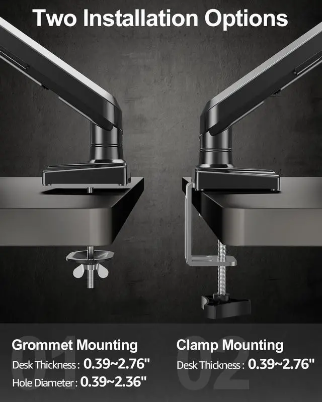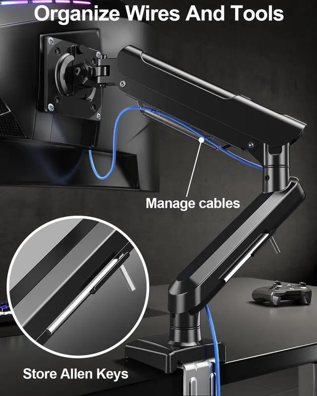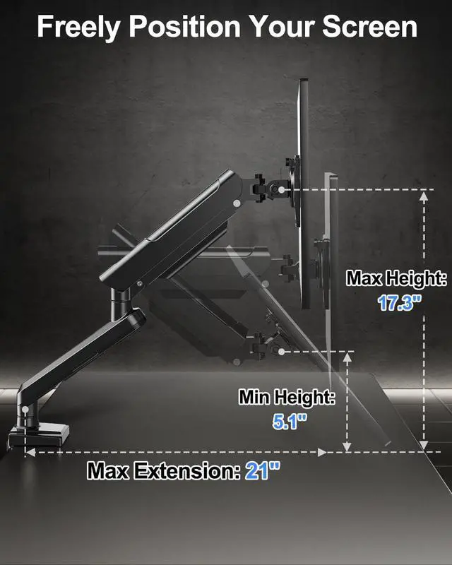 Flexible Adjustment: ErgoFocus full motion single monitor desk mount allows you to adjust your monitor to the perfect height and distance, 180° swivel, tilt +90° to -90°, 360°rotation, reducing neck and back strain and increasing your productivity