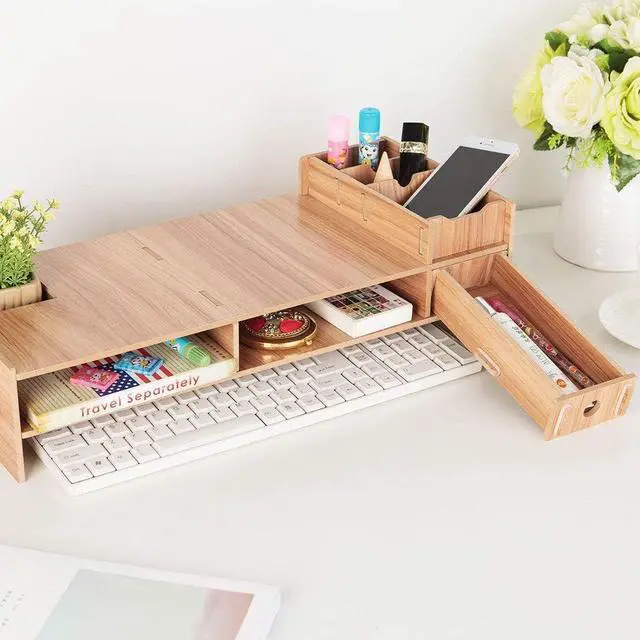 Organize Your Space: Our desk monitor laptop stand is made from wateright, and sturdy material. It provides ample space for storing your documents, magazines, cosmetics, and other essentials, helping you keep everything neatly organized and easily accessible.