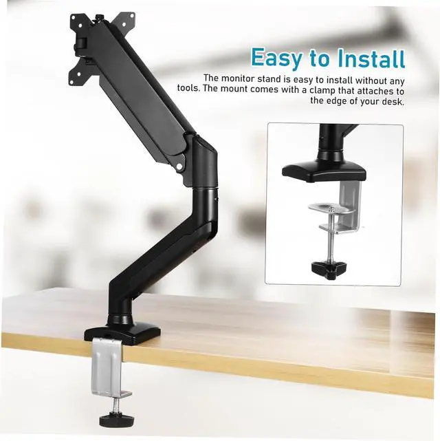 Gas spring monitor arm-- easy to install: the monitor stand is easy to install without any tools, the mount comes with a clamp that to the edge of your desk,swivel monitor arm