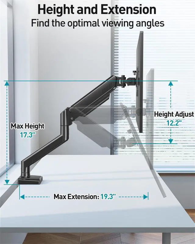 Comfortable for Working - The adjustable mount help you enjoy the freedom to adjust your monitor height and angle. Your screen can be adjust up and down with one hand to accommodate your sitting position, improving your work experience. For higher or longer mount, please search B0DX76PGXF