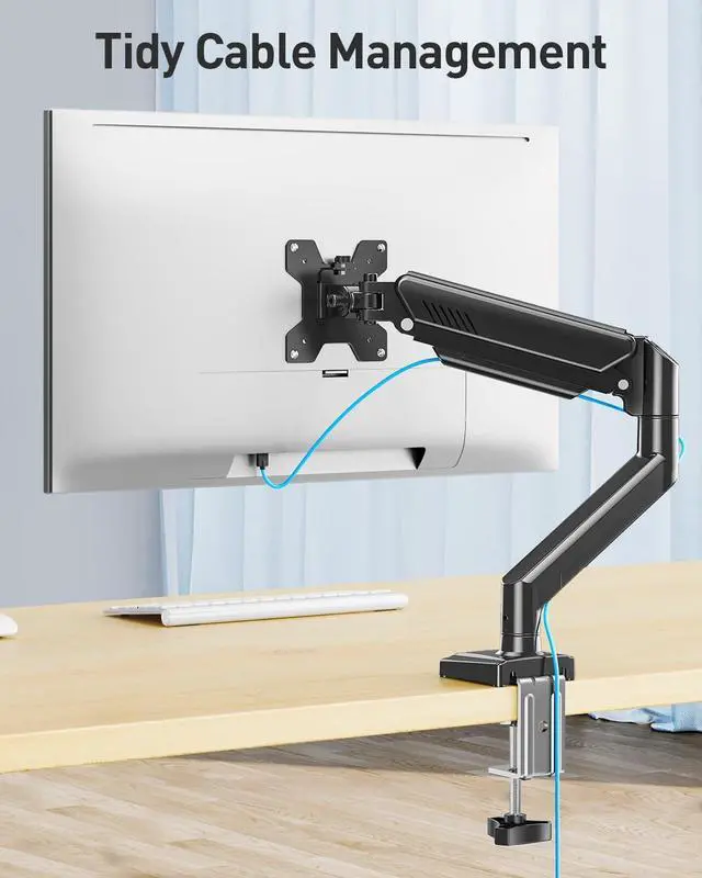 Clear Up Desk Space - The adjustable monitor arm for desk can release a lot of desktop space, so that you can place more accessories to build a more comfortable working experience. And the hidden cable management can keep your desktop more neat and tidy