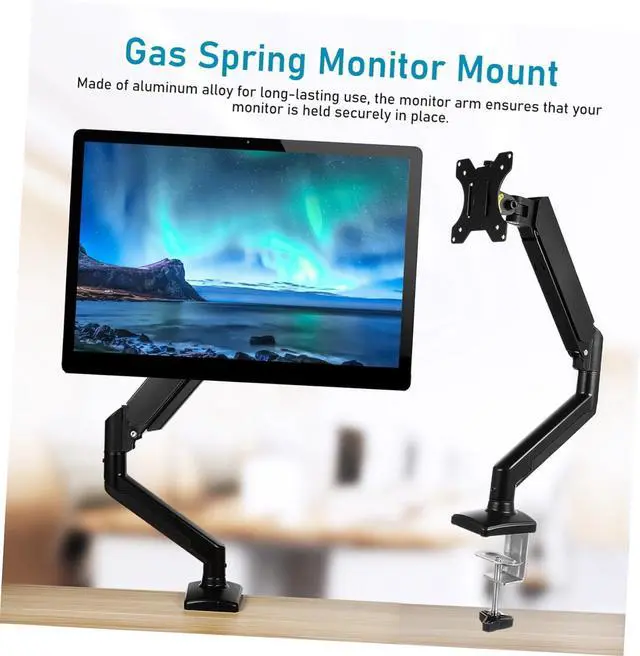 Gas spring mount: easy adjustments: this monitor desk mount can be rotated and adjusted to ensure that you can work comfortably and efficiently without straining your neck or eyes,monitor desk arm