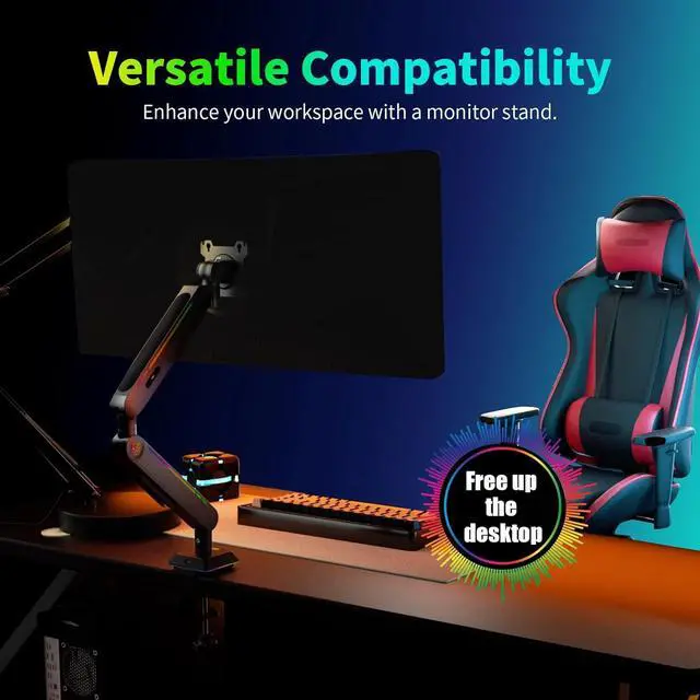 Space-Saving Design: Single monitor arm frees up valuable desk space for a clutter-free workspace.