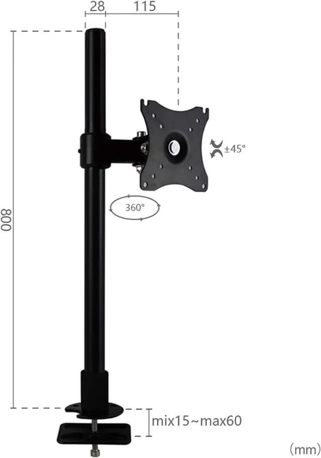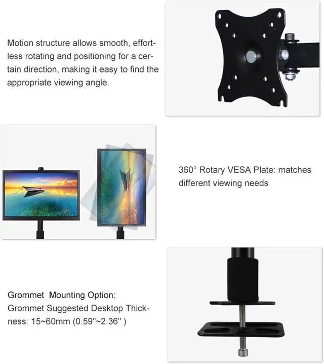 Mounting Options - Heavy-duty desktop perforated mount for maximum stability. Recommended desk thickness of 0.5" to 2.3".